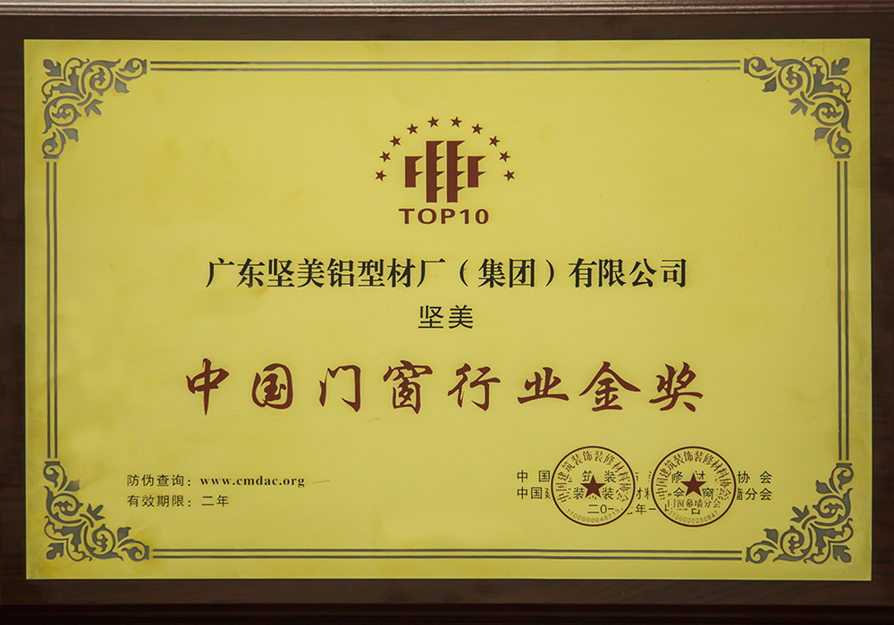 中国门窗行业金奖-牌匾