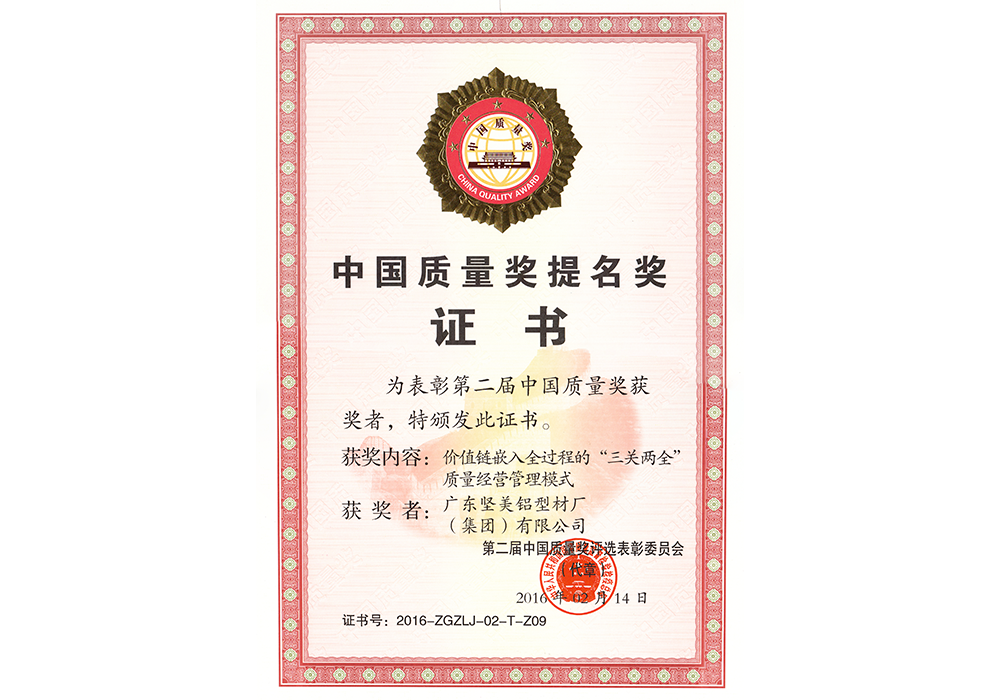 第二届中国质量奖提名奖